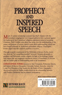 Prophecy and Inspired Speech in Earley Christianity and its Hellenistic Environment